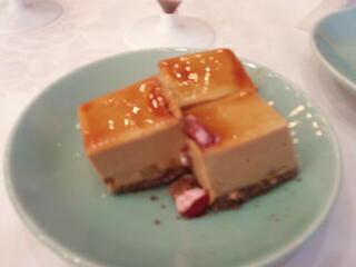 後、キャラメルムースのケーキです。中に、カシューナッツが、細かく入ってて、うまいんです。