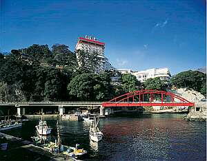 熱海の高台にある一軒宿で、海に迫り出した感じの建物です。