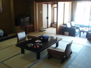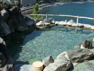 展望の素晴らしい、広い岩風呂と、日本一の広さを誇る王朝大浴殿、無料の貸し切り風呂、さらに展望内湯に、部屋のお風呂まで温泉ということで、ほんとに、ここだけで湯巡りができて、思う存分温泉を楽しめます。