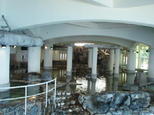 二階建の吹き抜けになっていて、その中に10個位のお風呂があります。