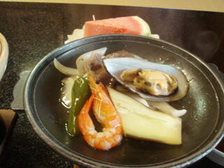ホイル焼きも、ほたてとエリンギを中心に、ボリュームがあり、炒めものも、肉、ムール貝、えび、ナスのが入って、うまかったですねー。