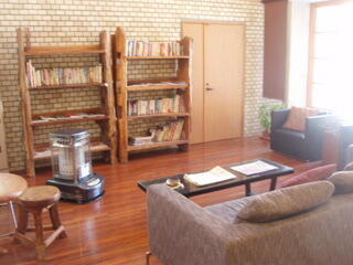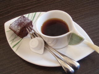 宿に到着すると、まずロビーで、コーヒーとガトーショコラを食べながら、受付を済ませ、部屋に移動。