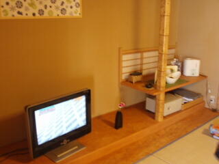 ところで、この部屋は、こじんまりとしてますが、加湿器も、薄型テレビも、まあまあでかい冷蔵庫もあり、なかなか快適です。紅茶と、コーヒーのセットと、お茶がありました。