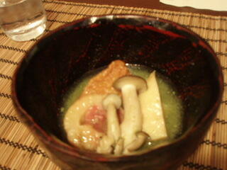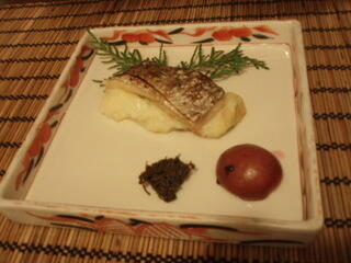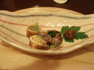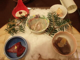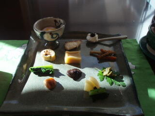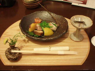 お造りは、湯葉、蒟蒻のさしみ、鹿のさしみ、白身魚のマリネなどで、この鹿の刺身が、びっくりでした。馬さしみたいな、触感です。