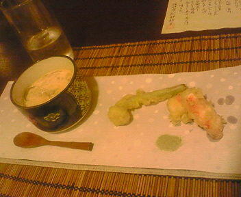 茶碗蒸しは、カニ、海老、ほたてなどが入って、具沢山でおいしかったです。ほうば味噌の味がしたのが、不思議でした。