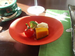 朝食は、少しずつの料理が、器に盛り付けられてて、きれいでした。