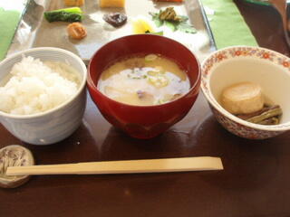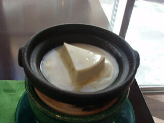 湯葉豆腐や、湯葉の煮物が、うまかったですねー。味噌汁の味も、なかなかですね。小松菜のジュースが甘くておいしかったです。