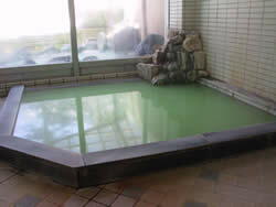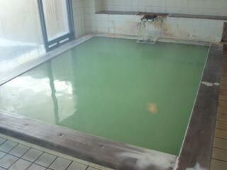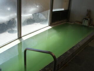 お湯は、緑色で、でっかい湯の華が舞ってます。